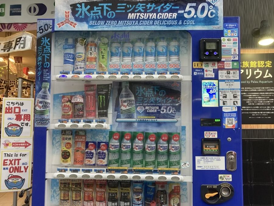京都では、観光地の売店や駅のコンビニが設置されています。嵐山の竹林の道を歩いた後、休憩がてら氷点下三ツ矢サイダーを楽しむのもおすすめです。