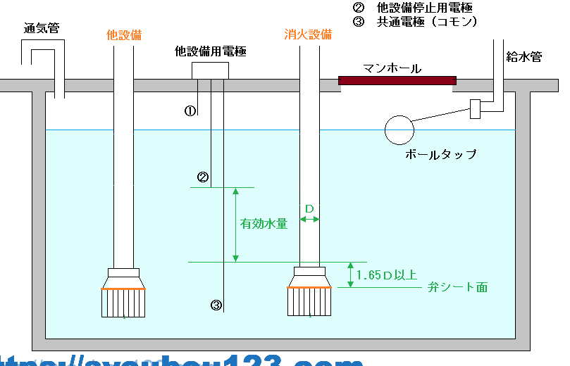 - 異常を確認する。 消火水槽の異常音や漏水を確認し、問題の特定に努める。