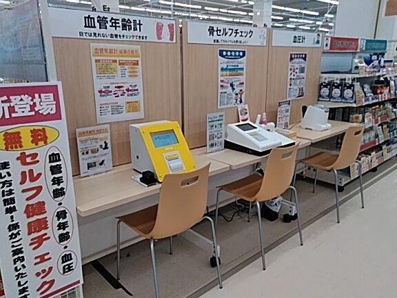 イオン内の設置店舗では、最新の血管年齢測定機器が揃っています。店舗の場所は複数あり、各店舗で利用可能なサービスは以下の通りです。