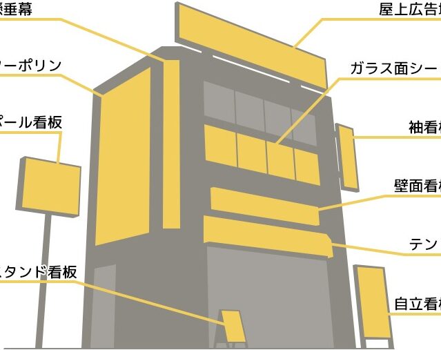 屋外看板は、店舗や企業の外部に設置される。以下のポイントを確認する。