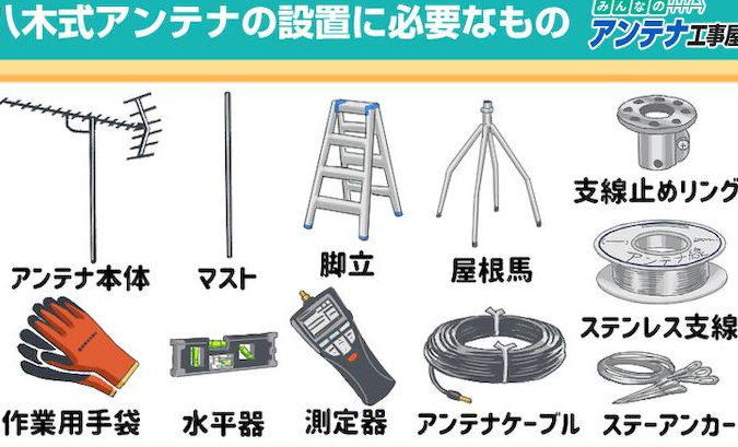 - 梯子: アンテナを高い位置に取り付ける場合、安定した梯子が必要です。