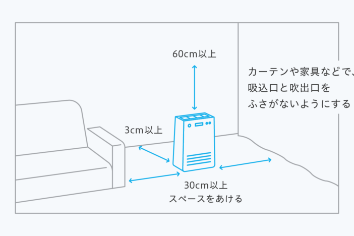 - 家具から遠ざける。家具や障害物からも離して置くことが大切です。これにより、空気の流れがスムーズになります。