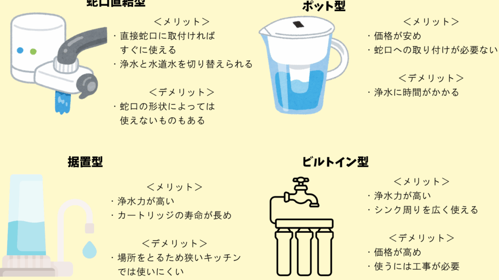 - 多様な選択肢: カートリッジ式や逆浸透式など、ニーズに合わせた選択肢があります。