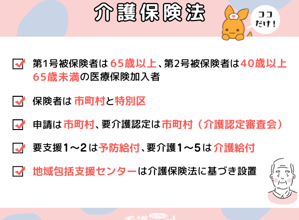 介護保険法に基づく制度は、以下のような仕組みで運営されています。