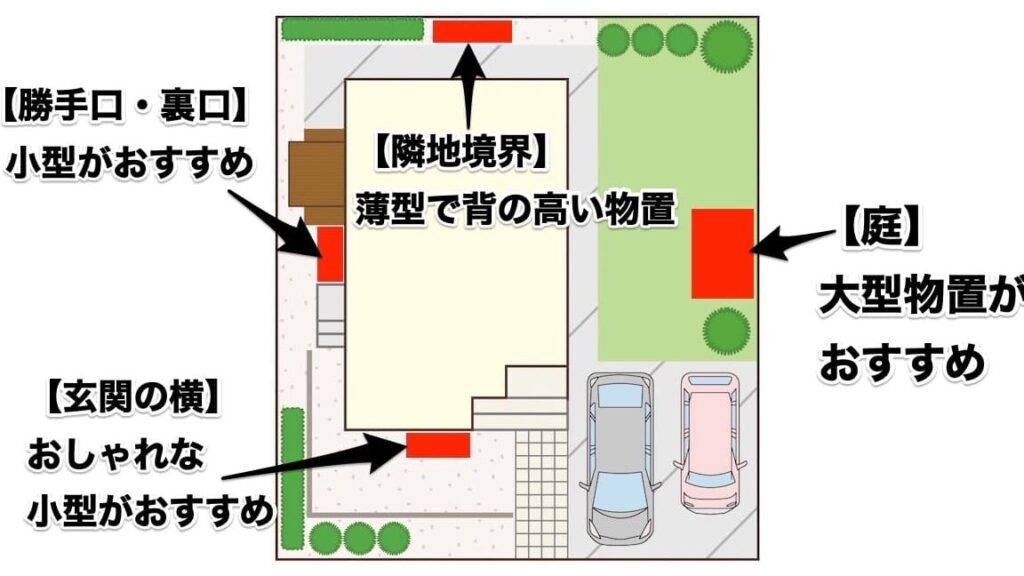 - アクセスの良さを確保する。物置が簡単にアクセスできる位置にあるべきで、通路が狭くないか確認する。