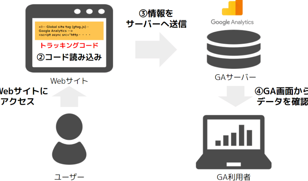 グローバルサイトタグは、Googleアナリティクスでデータを追跡するために必要なコードです。以下の手順で導入します。