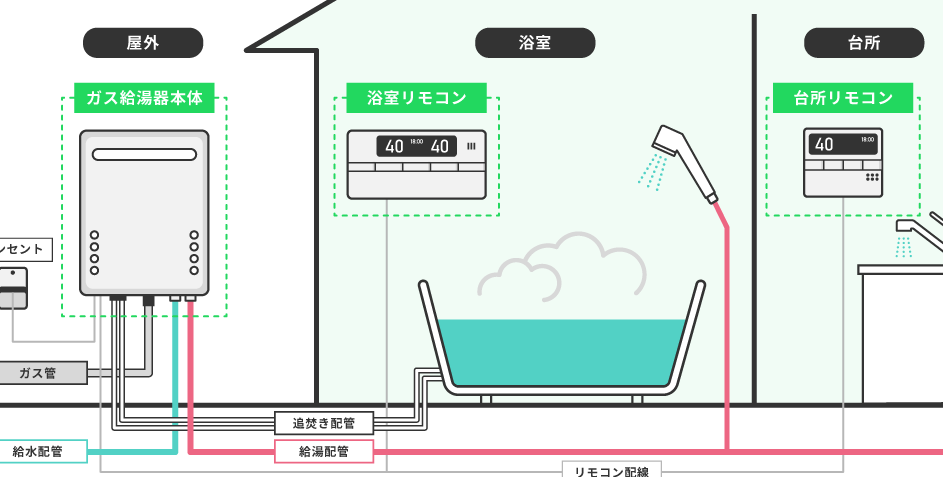 - 給湯器本体 – 選んだ種類に応じた機器が必要です。