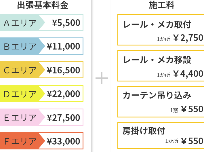 カーテンレール取り付け費用の要因