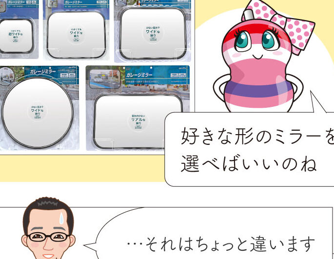 - 使用目的を明確にする。例えば、駐車を助けるためなら広角ミラーが適しています。