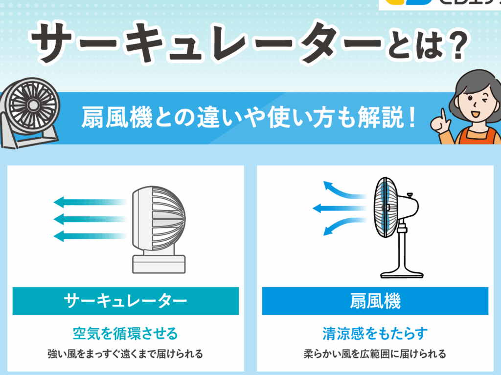 - 湿気を効率的に調整する。サーキュレーターは、空気の流れを作り、湿気を減らすことで快適さを向上させます。